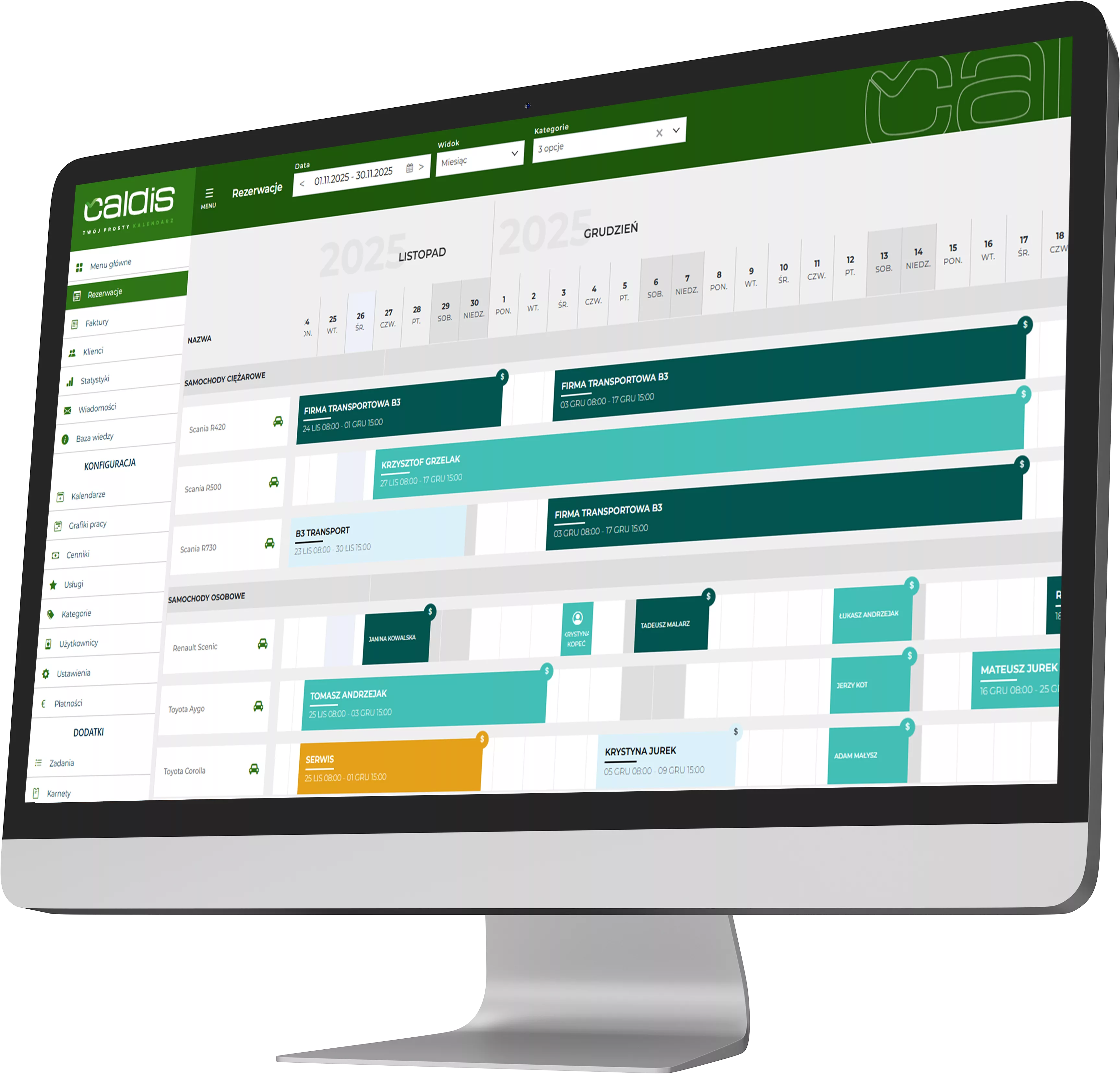 Kalendarz w aplikacji CALDIS to narzędzie stworzone z myślą o firmach zajmujących się wynajmem samochodów, autokarów i łodzi.